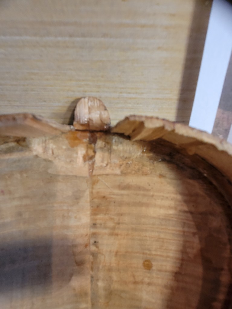 My initial feeling on this violin was that it had some pretty nice wood. The German arching has always intrigued me. In the end, rather than install new pegs as I had first intended, I got the old mechanical pegs fixed up (luckily I had another set to steal parts from). I feel the pegbox was made to accommodate them, and not sure it would be easy to properly convert to regular pegs. So far, I’m not totally unhappy with them.