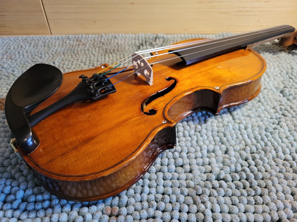 Looks good. Fitted with Thomastik Alphayue strings, it sounds even better! This one may be of interest to that petite player. Look for it in the Violins for Sale section of this blog!