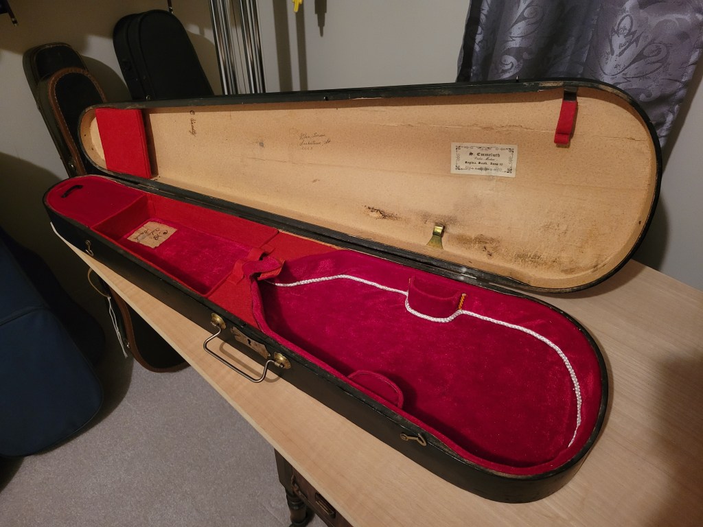 This story is not of a violin, or a viola or cello, but of a violin case that held those tales. It came into my shop thanks to Ab Gamble of Regina, Saskatchewan. Ab is a guitar luthier and, like me, is having a ball learning a new art.