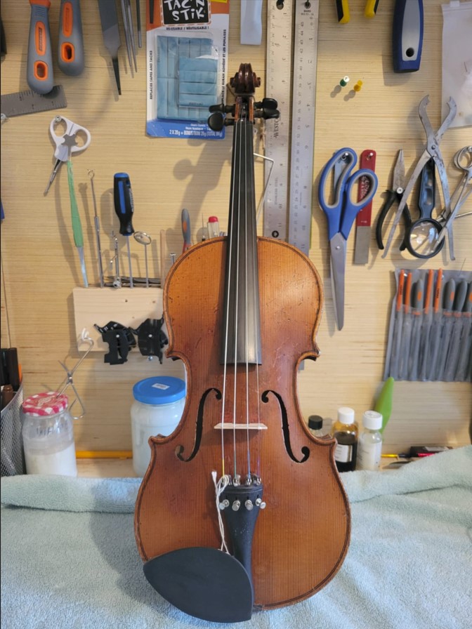 With all said and done, of course it looks like any other violin. It’s hard to say what kind of resonance and volume the violin had in its original state, but it definitely seems to have a powerful bass now.