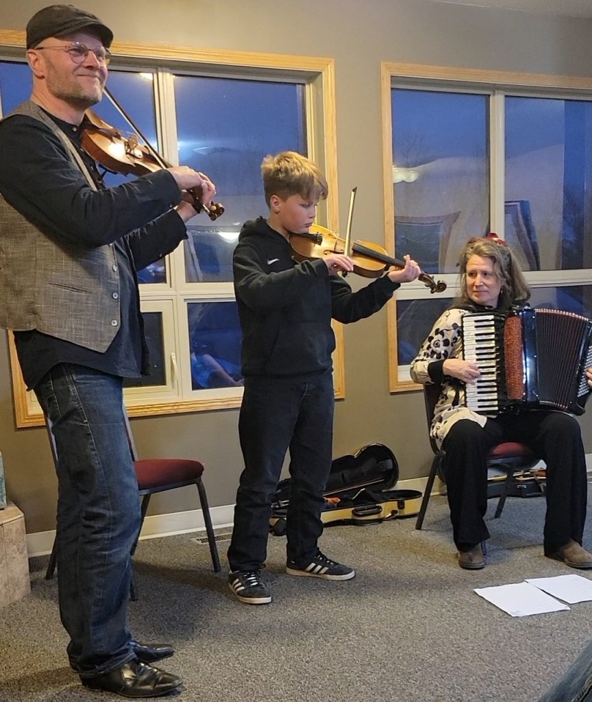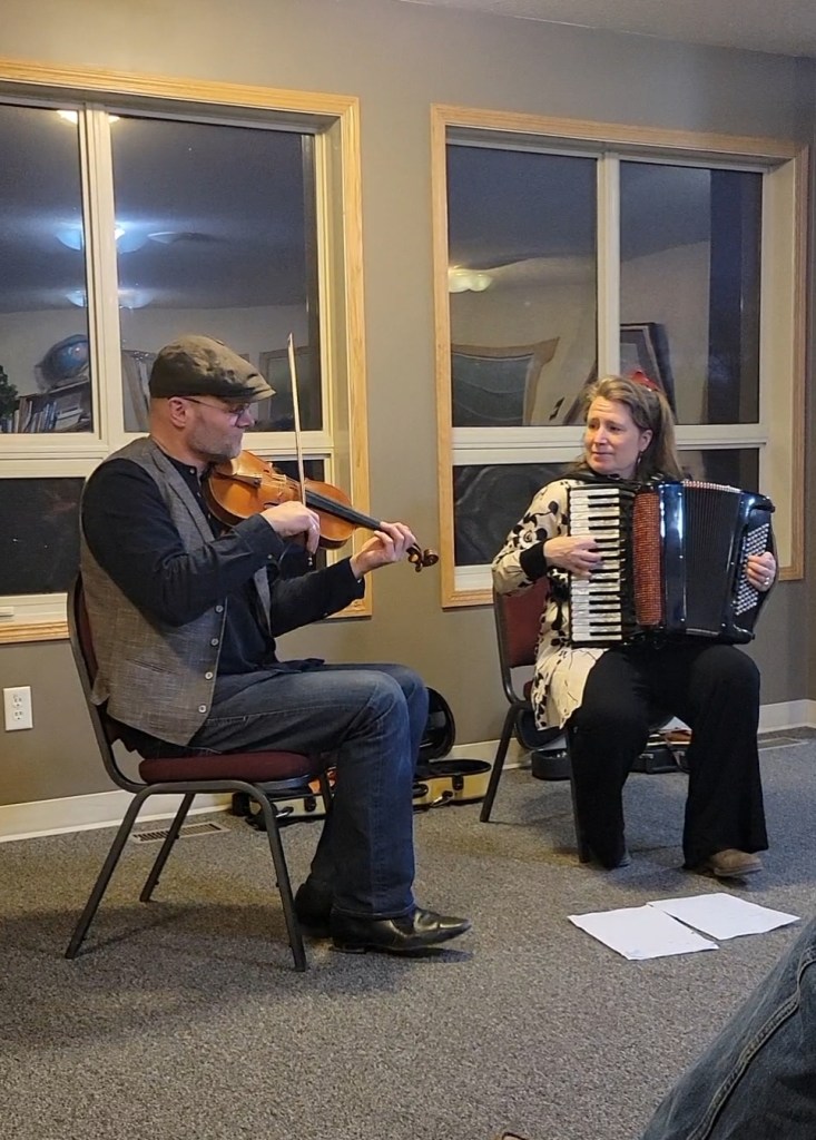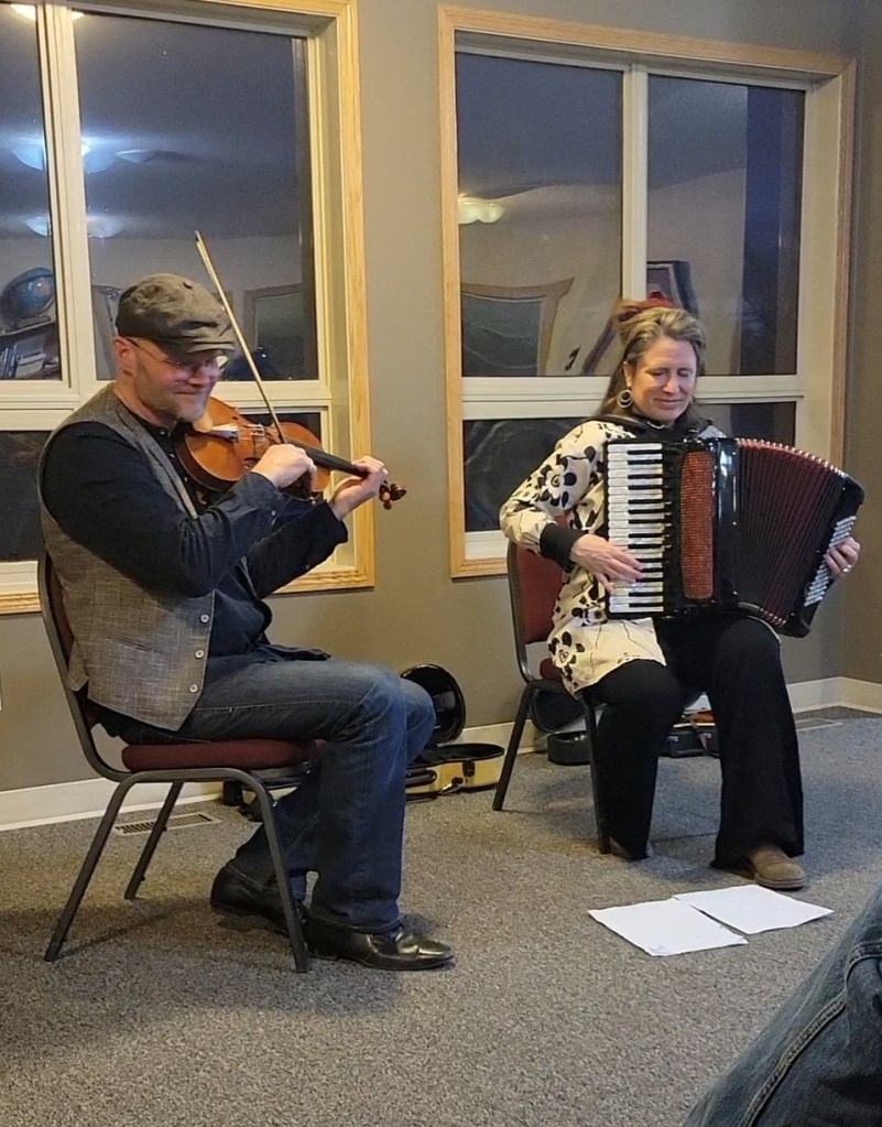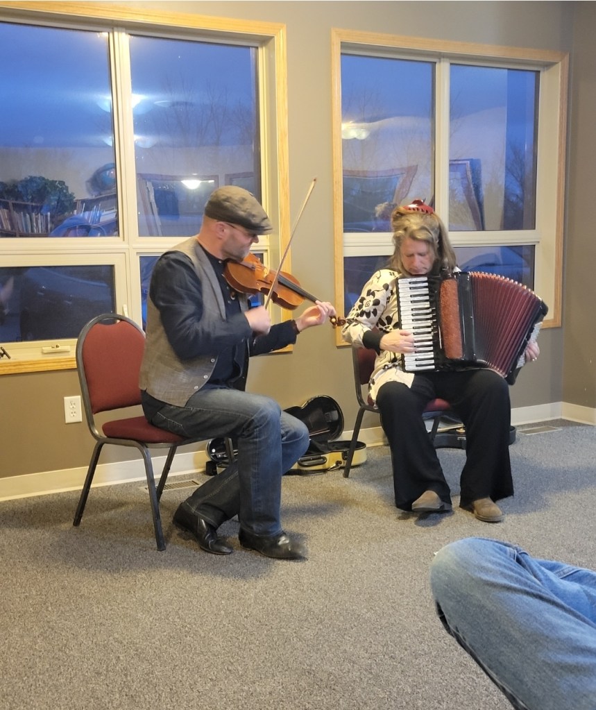 On April 12, 2025, the Outlook Arts and Culture Council hosted the Danish husband and wife duo of Maren Hallberg and Jorgen Dickmeiss. (apologies for not getting the little line through the ‘o’. I’m not sure how to do that)