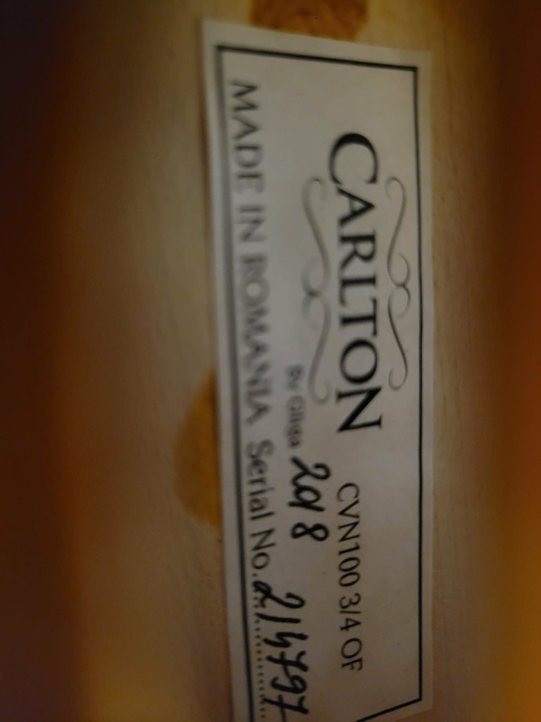 Carlton 3/4 Outfit: This is a good quality Romanian made violin outfit (2018) in absolutely new condition. New strings. Comes with case, bow, shoulder rest. Priced at $350