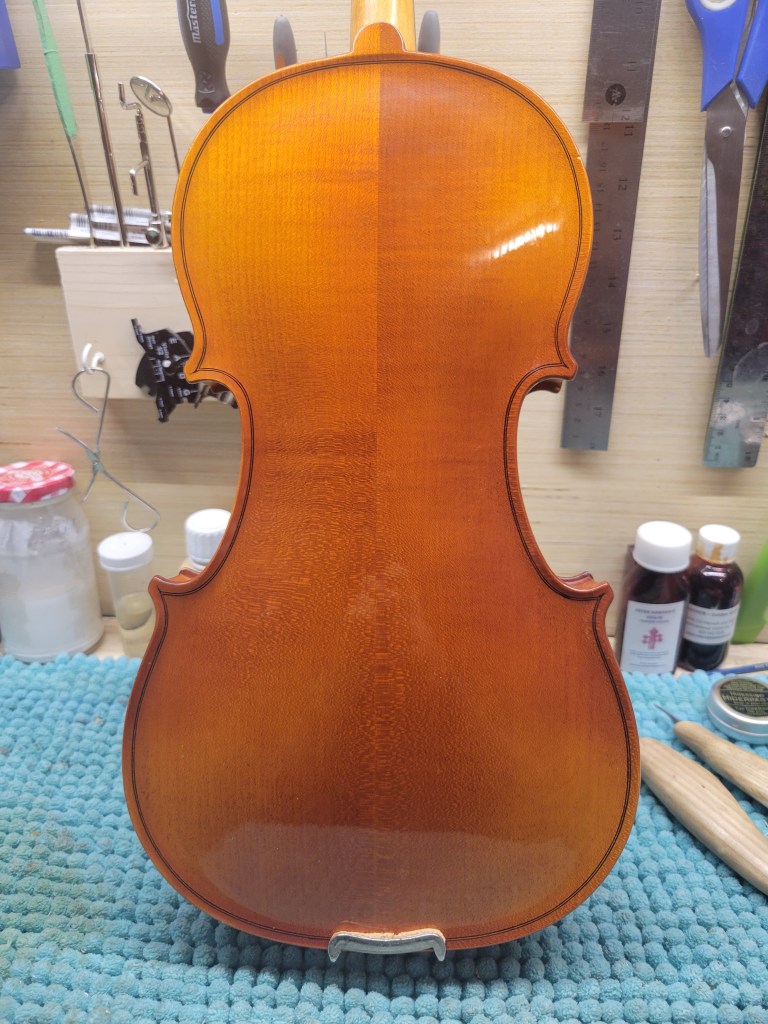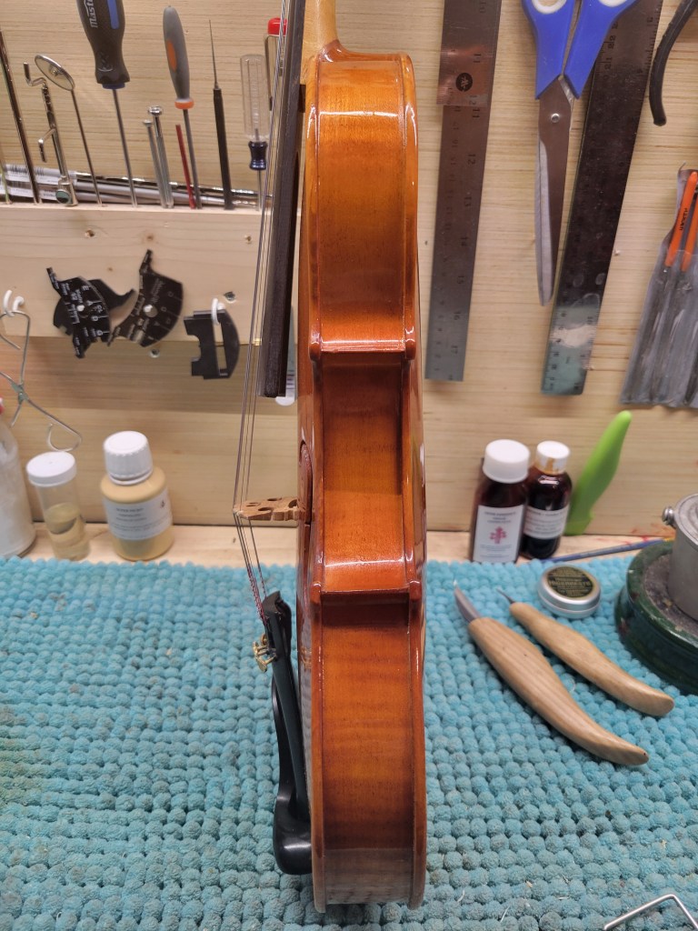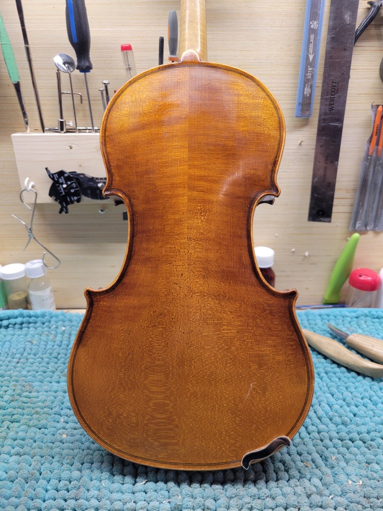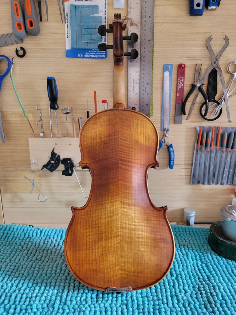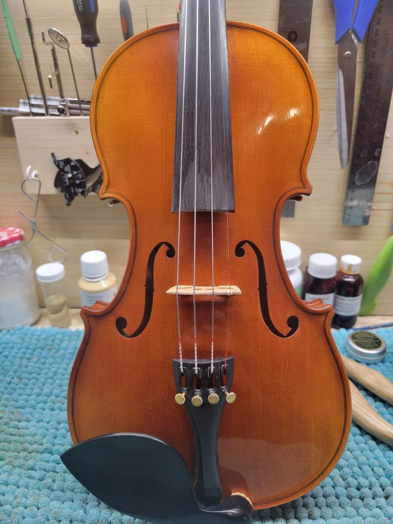 Cremona Violin: This one bears a stamp under the button, and was likely produced sometime in the first half of the twentieth century. I have graduated the top plate and I have to say, it has become a very powerful and responsive fiddle. This Strad copy is set up with new Tonica strings and priced at $450